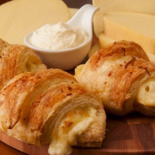 Massa folhada amanteigada e crocante, recheada com uma mistura cremosa e irresistível de queijos derretidos que se desfazem a cada mordida.
