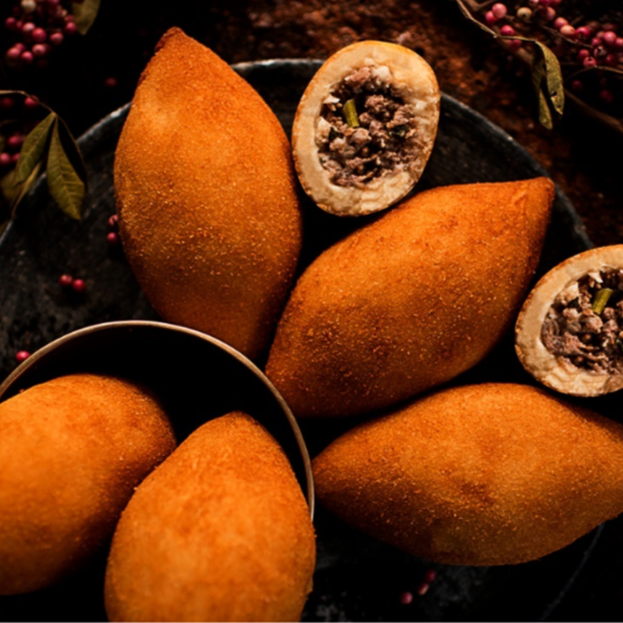Crocante por fora e macio por dentro, preparado com trigo e carne moída bem temperada, trazendo um sabor marcante e irresistível.