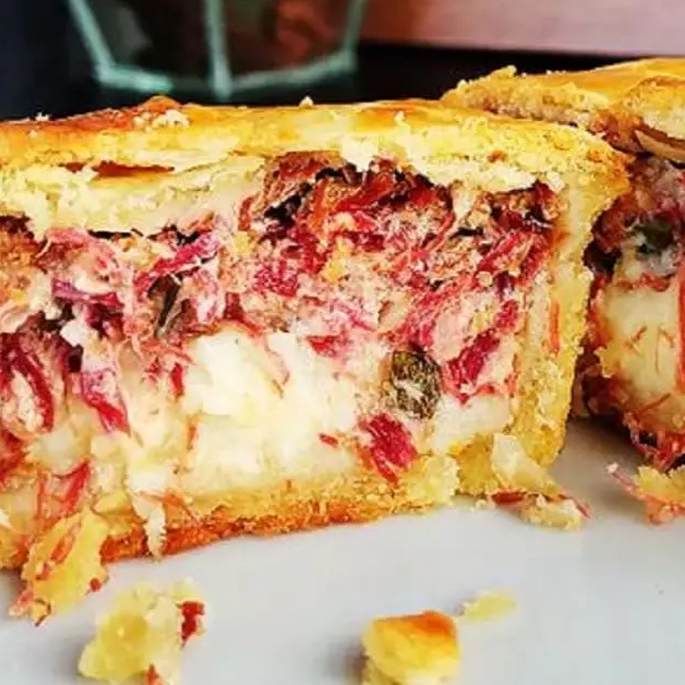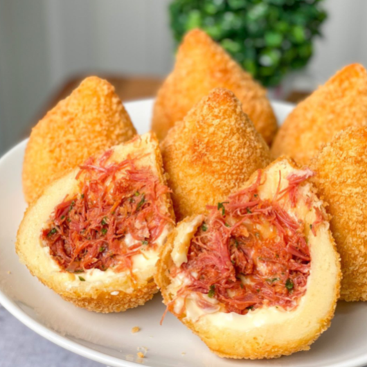 Recheio suculento de carne seca bem temperada com catupiry, envolto em uma massa amanteigada e crocante que derrete na boca.
