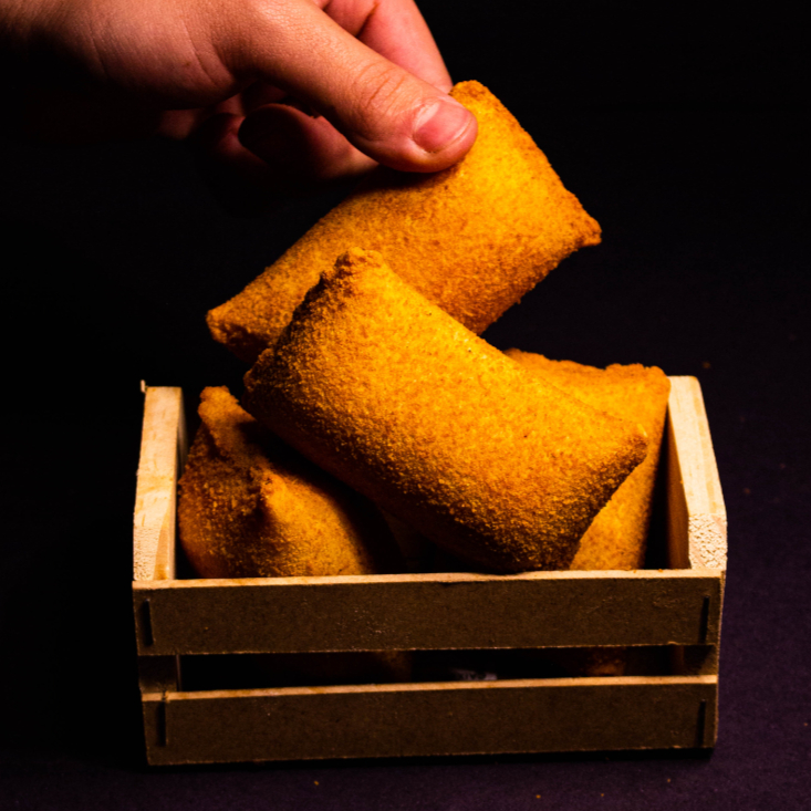 Massa douradinha e crocante, recheada com Queijo, garantindo sabor e suculência em cada mordida.