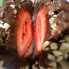 Brigadeiro cremoso morango coberto com amendoim e Nutella