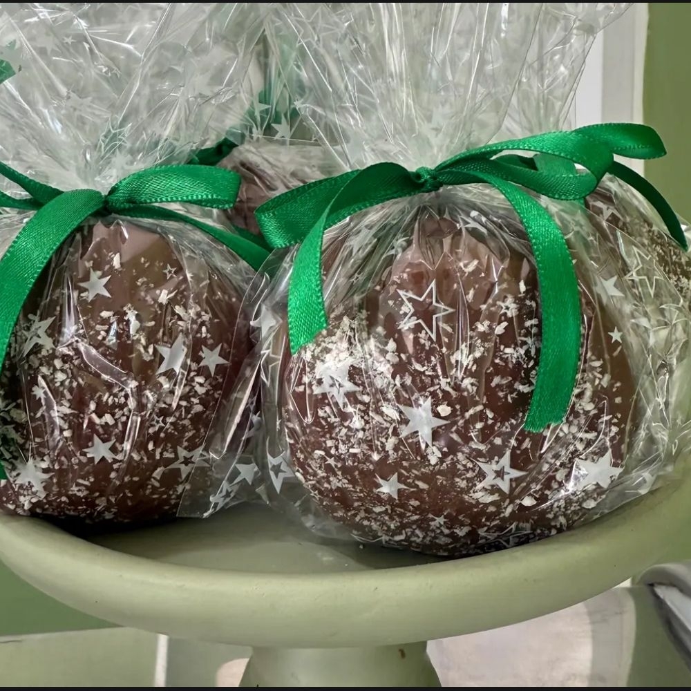 casquinha de sorvete banhada no chocolate de caramelo ,sucrilhos doce de leite e caramelo salgado