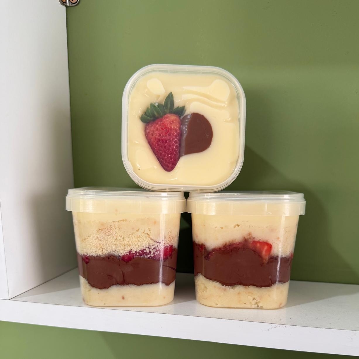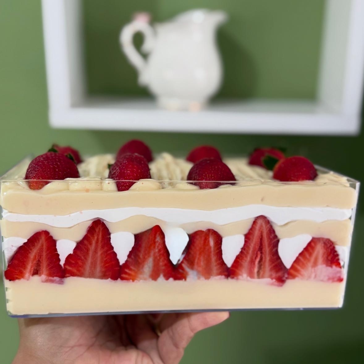 massa de baunilha molhadinha ,recheado com mousse de ninho morangos,e leite condesando ..