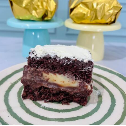 Massa de chocolate, cocada coberto brigadeiro