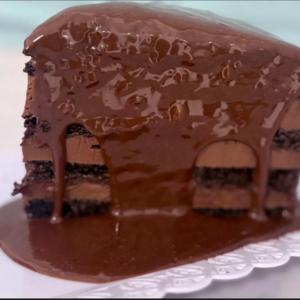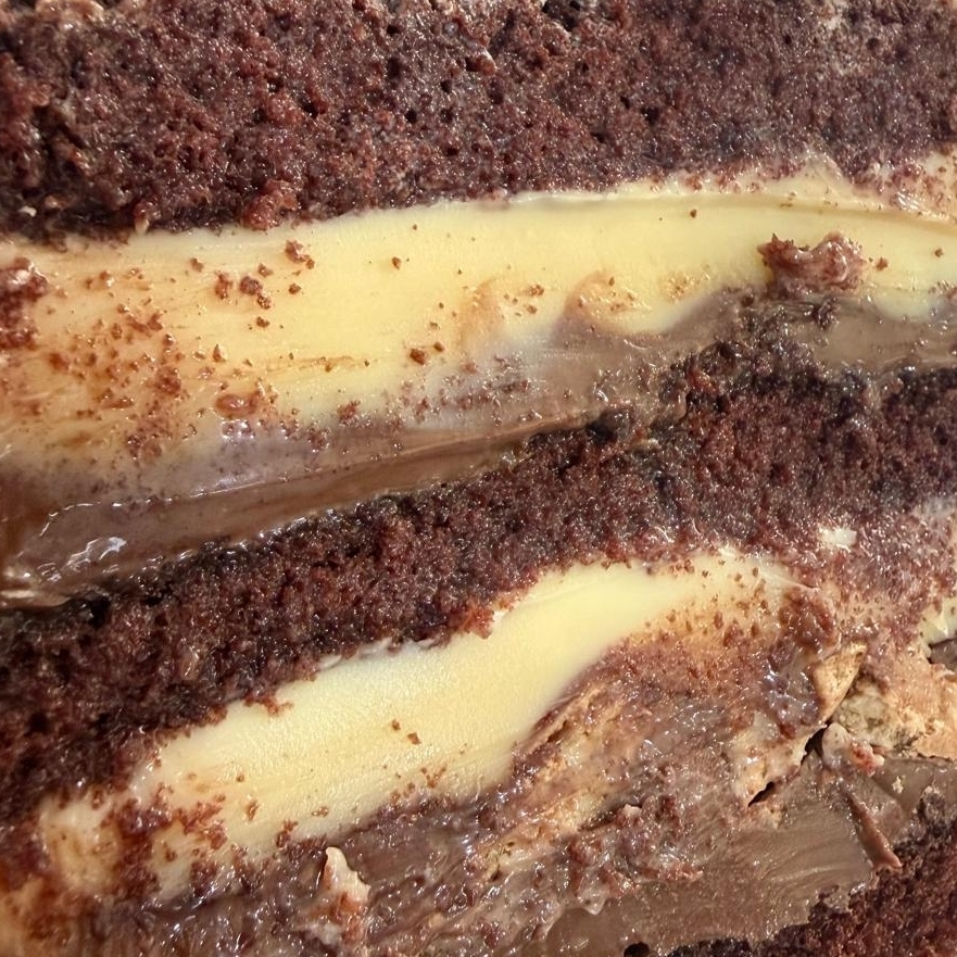 Massa de chocolate, brigadeiro de Ninho e trufa de chocolate meio amargo.