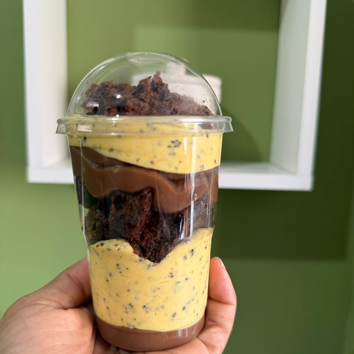 Mousse de maracuja ,brigadeiro cremoso,pedaços de brownie