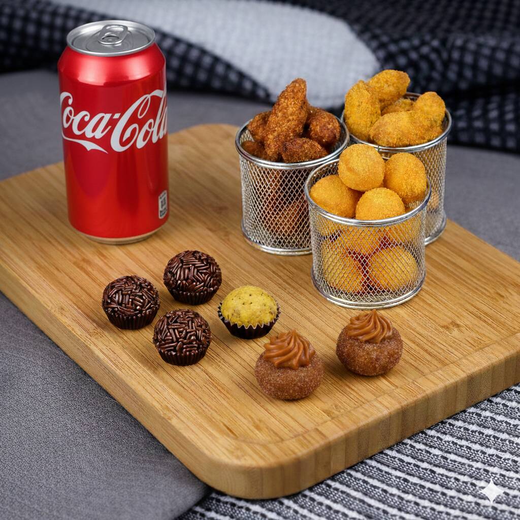 50 Salgados, 25 Doces Clássicos e 1 Refrigerante 1,5 Litros