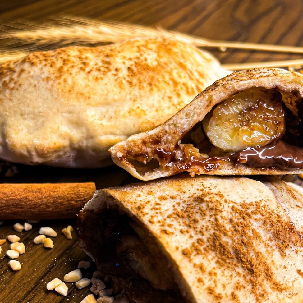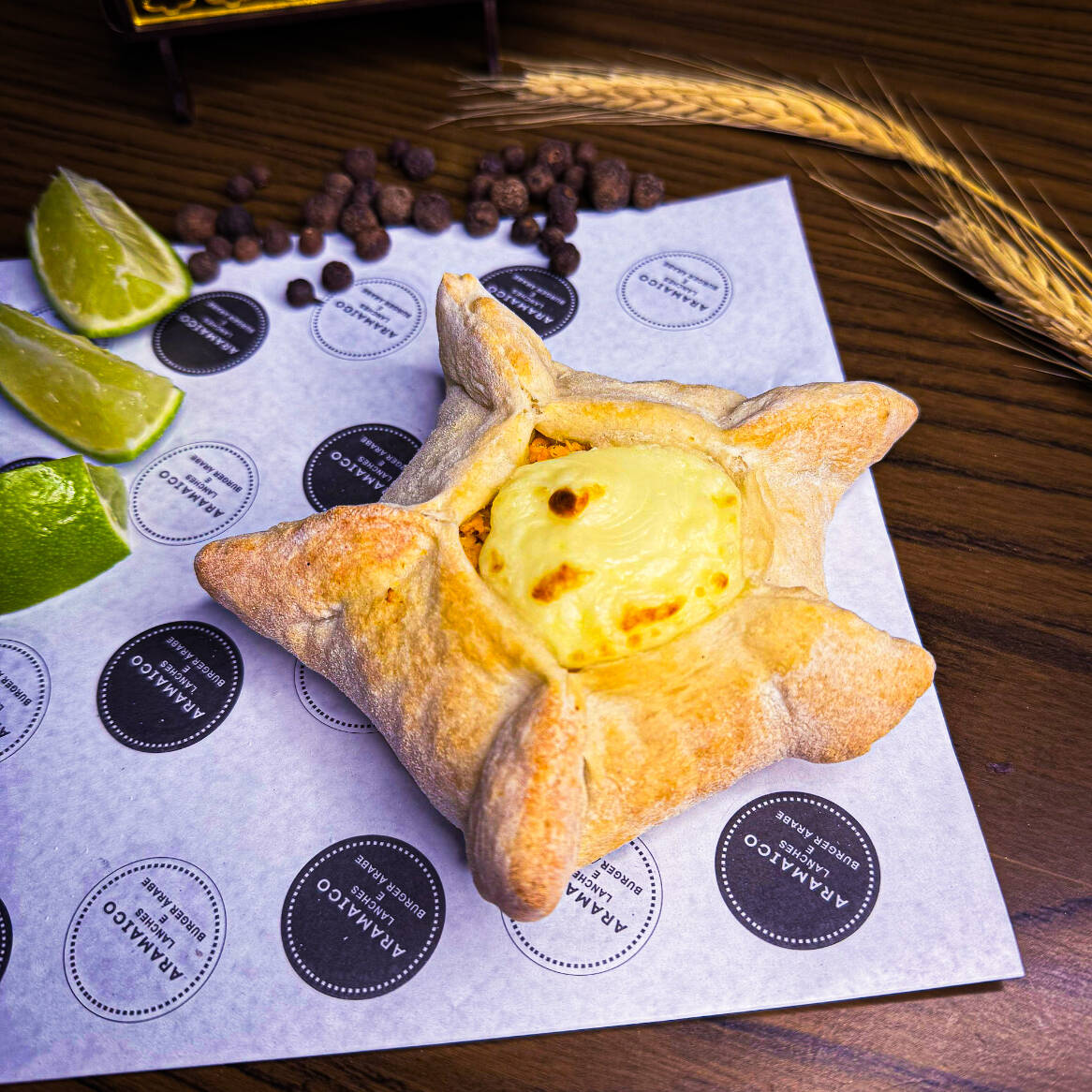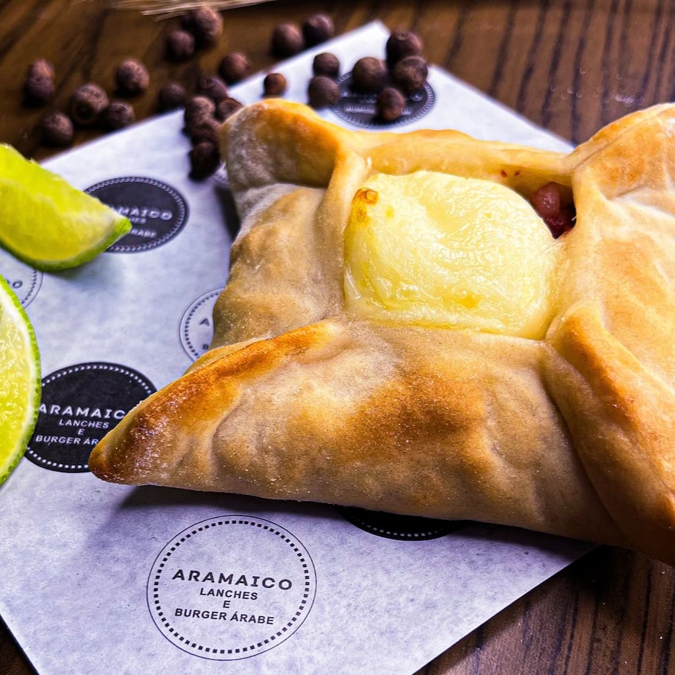Nossa Esfiha de Aramaico doce é uma verdadeira tentação. Em sua composição, creme de avelã com cacau, delicadamente harmonizado com banana e um toque de canela, proporciona um sabor inigualável. O amendoim adicionado à receita confere aquela crocância irresistível, que torna cada mordida uma experiência única. Esta é uma esfiha que vai além do convencional, agradando os paladares mais exigentes.