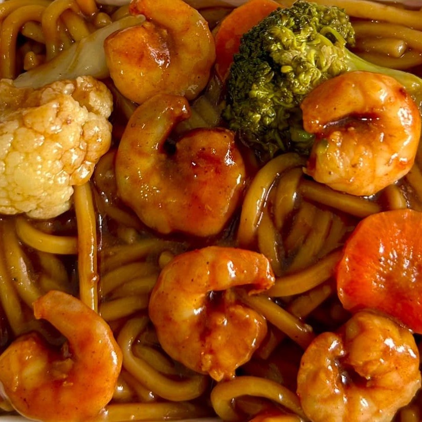 Clássico macarrão oriental, com camarões suculentos e selecionados, legumes e champignons. Molho à base de shoyu e um tempero delicioso. Finalizando com brócolis, cenoura, couve-flor, cebola e acelga.