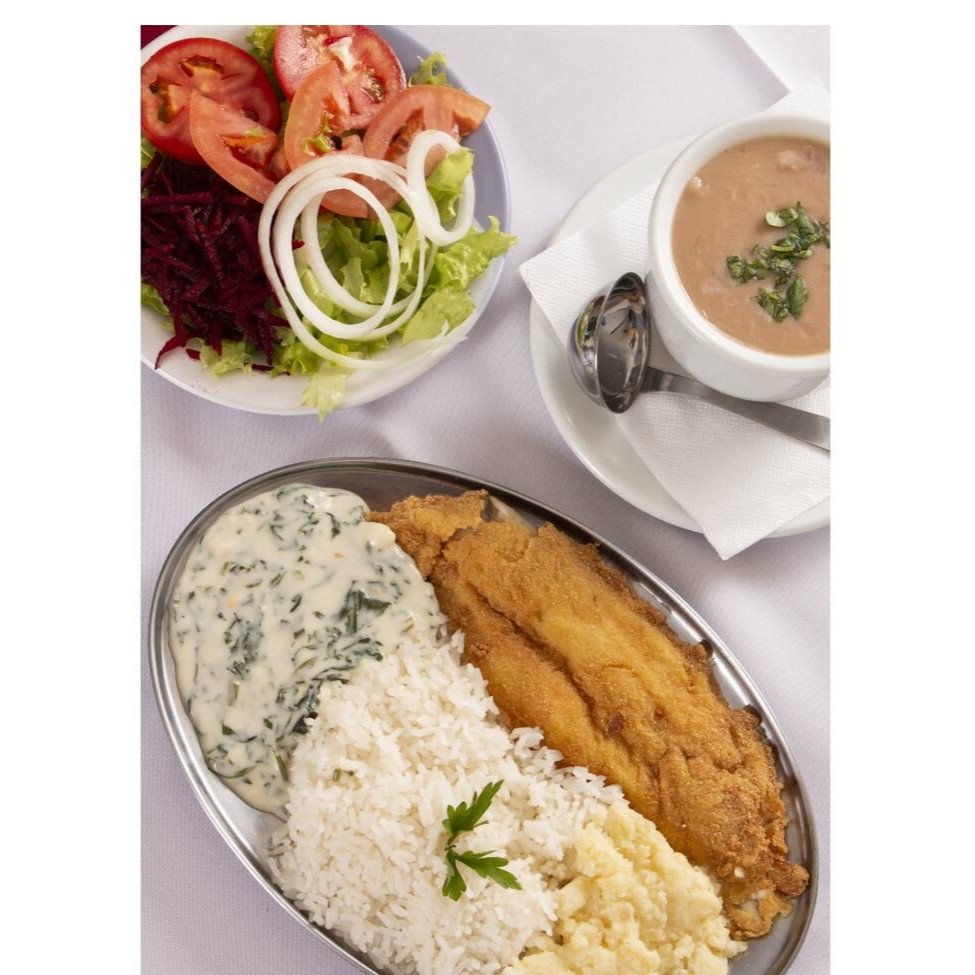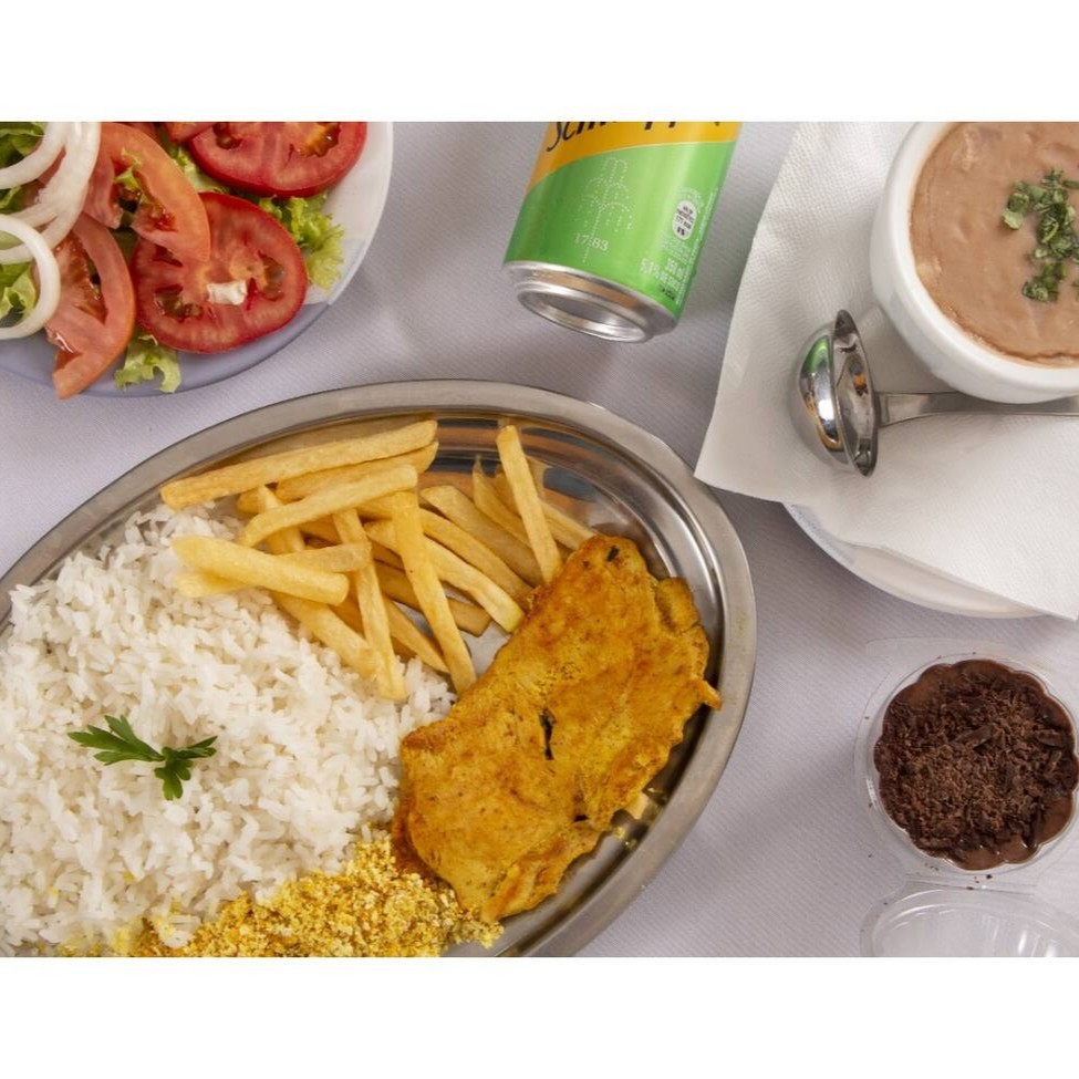 Acompanha: arroz, feijão, fritas, farofa e salada (alface, tomate, cebola, beterraba ou cenoura).