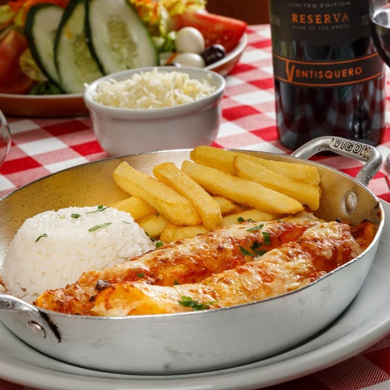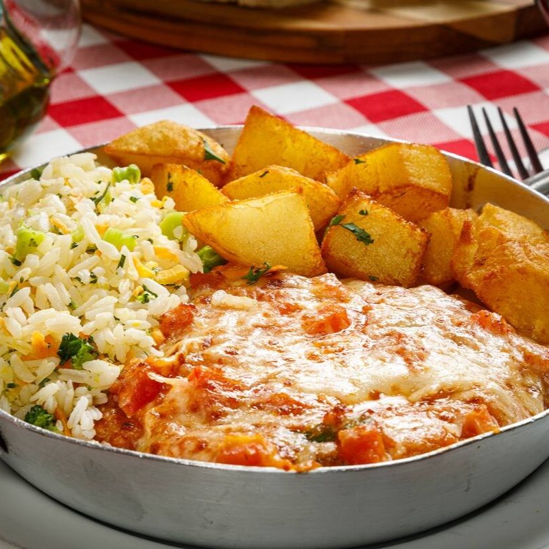 Deliciosa Parmegiana de Mignon, cuidadosamente preparada e coberta com um autêntico molho de tomates frescos. Este prato é gratinado ao forno, resultando em uma crosta dourada e irresistível. Acompanha uma massa recheada, que complementa perfeitamente o sabor robusto do mignon. Um prato combinado individual, perfeito para os amantes da culinária italiana que prezam pela sofisticação e qualidade dos ingredientes.
