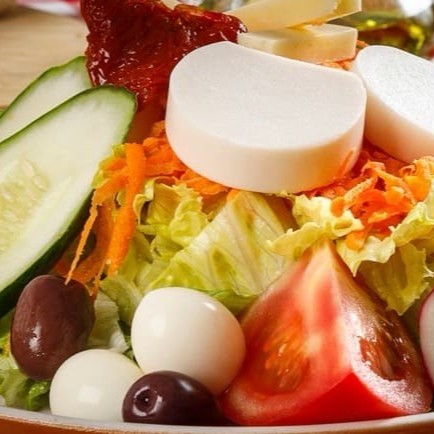 Mix de folhas,tomate, cenoura,rabanete,tomate seco, pepino ,palmito,azeitonas,ovos de codorna, queijo e molho especial.(300g)