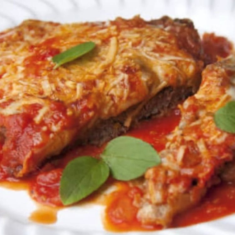 Carne empanada e recheada de mussarela ao molho de tomate fresco gratinado com queijo ( unidade )