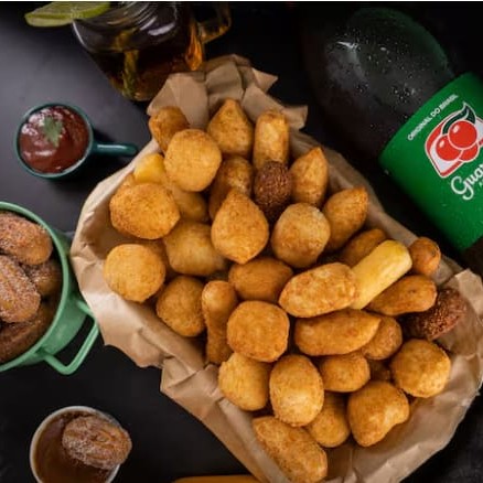 50 Mini Salgadinhos + 10 Churros + Guaraná 2 Litros