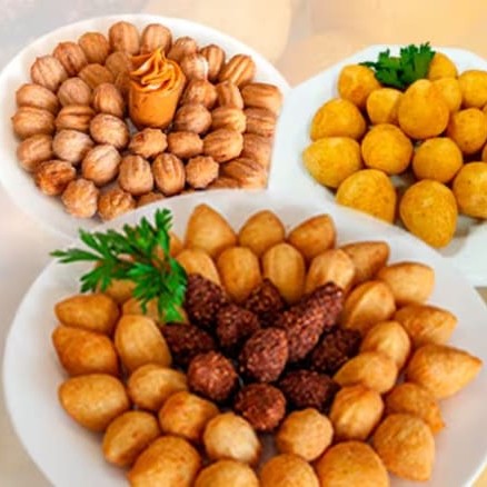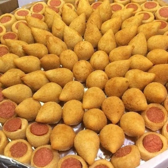 Desfrute de 25 mini salgadinhos variados, entre: coxinha de frango, bolinha de queijo, risole de presunto, croquete de carne e kibe. Salgadinhos fritos na hora.