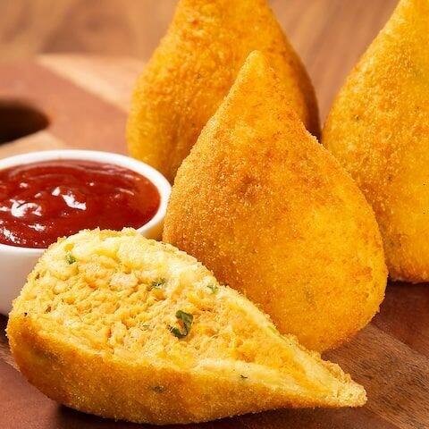 Nossa coxinha é simplesmente deliciosa! Bem recheada com nosso tempero caseiro, a massa é crocante e macia ao mesmo tempo. Certamente vc vai amar viver essa experiência conosco pois ela é preparada artesanalmente e com muito cuidado e carinho :) Tamanho de 130g