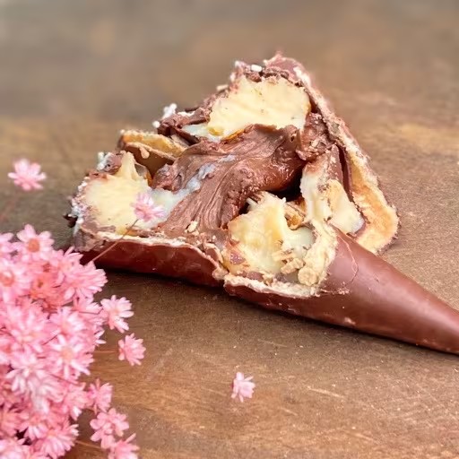 Saboroso cone crocante envolvido externa e internamente em chocolate, com deliciosas opções em recheios gourmet.