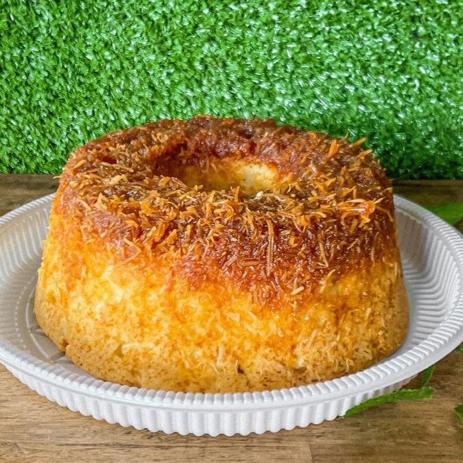 Aproveitando o sucesso do nosso bolo piscininha pe de moleque, criamos o bolo cocada! Massa fofinha de coco com cobertura de açúcar com coco! Um sabor inigualável como muitas outras delícias do nosso cardápio. Serve de 6 a 7 pessoas.