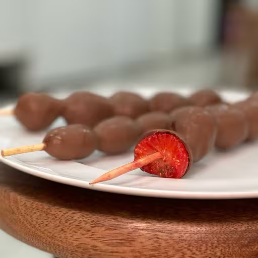 Apresentamos o nosso Espeto de Frutas, um deleite irresistível para os amantes de doces. Ele é composto por 5 a 6 unidades de frutas fresquinhas, cuidadosamente selecionadas e variando conforme o tamanho. Cada pedaço de fruta é generosamente banhado no nosso sedutor chocolate ao leite, proporcionando uma explosão de sabor em cada mordida. A combinação perfeita de doce e saudável, esta delícia é uma opção requintada e acessível para quem deseja se deliciar sem pesar no bolso. Experimente!