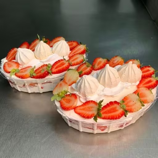 Merengue cremoso de chantininho com suspiros e morangos frescos. Sabor sem igual! 200ml