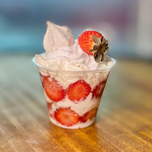 Duplo Ninho em 300ml de camadas e camadas de deliciosa combinação entre brigadeiro de Ninho, pão de ló de baunilha caseiro, mousse de Ninho, muitos Morangos frescos, finalizando com brigadeiro de Ninho e morangos deliciosos! Muito muito gostoso, um dos mais vendidos do nosso cardápio!