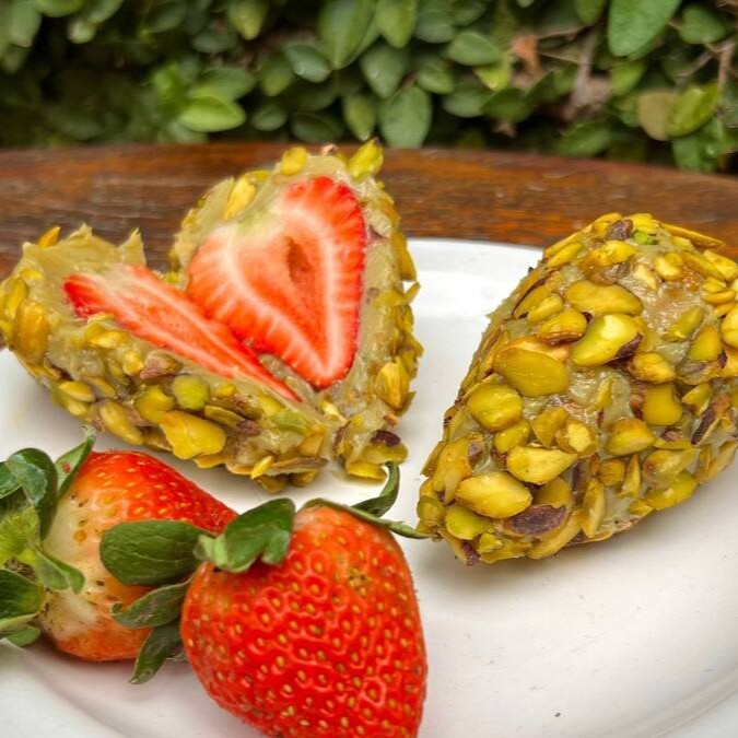 Super em alta na confeitaria atual, trouxemos a coxinha de pistache pra vcs provarem quão surreal é essa combinação do nosso brigadeiro de pistache com morango. Só provando mesmo pra saber rs...