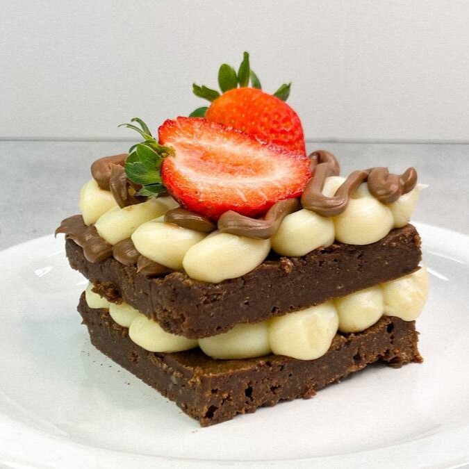Deliciosa combinação de duas camadas do nosso brownie beeem chocolatudo, brigadeiro de Ninho, e muuita Nutella pura.