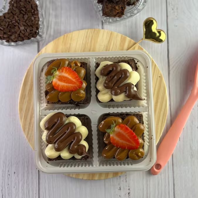 Nosso Brownie delicioso e chocolatudo com coberturas ainda mais gostosas pra você matar a vontade de um doce! Coberturas de doce de leite e Ninho com Nutella, bem separado e embalado! Prevemos aqui mais um sucesso em nosso cardapio! Legal também pra presentear ;)