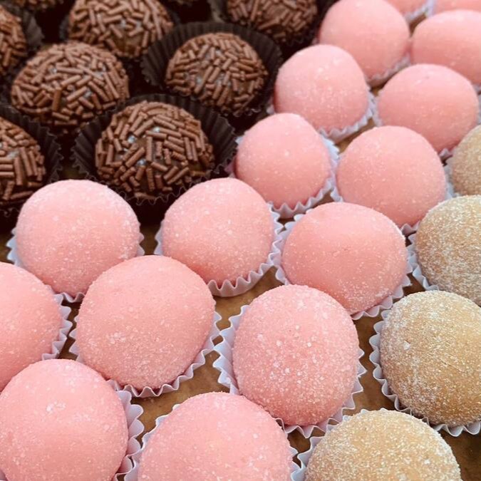 Contém brigadeiro ao leite, bicho de pé, beijinho com flocos de coco e Ninho com Nutella.