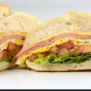 Pão francês, alface, tomate, ovo, presunto e queijo mussarela
