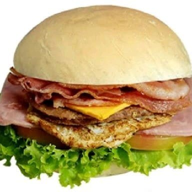 Pão de hambúrguer, alface, tomate, ovo frito, hambúrguer 90g e queijo mussarela.