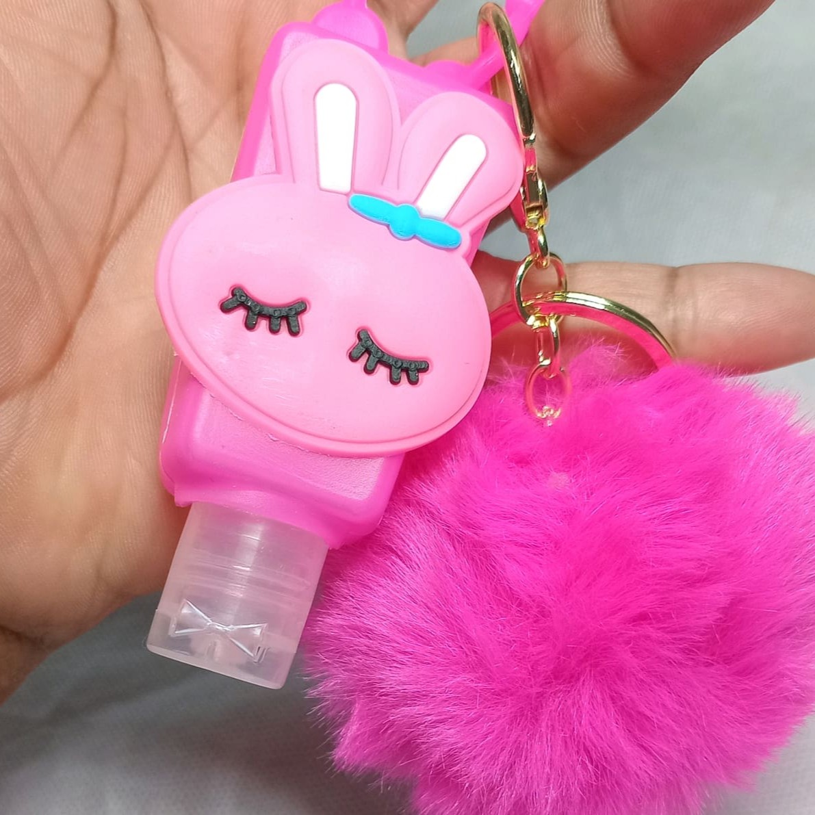 Chaveiro De Pompom Com Um Porta Álcool Em Gel. Pink