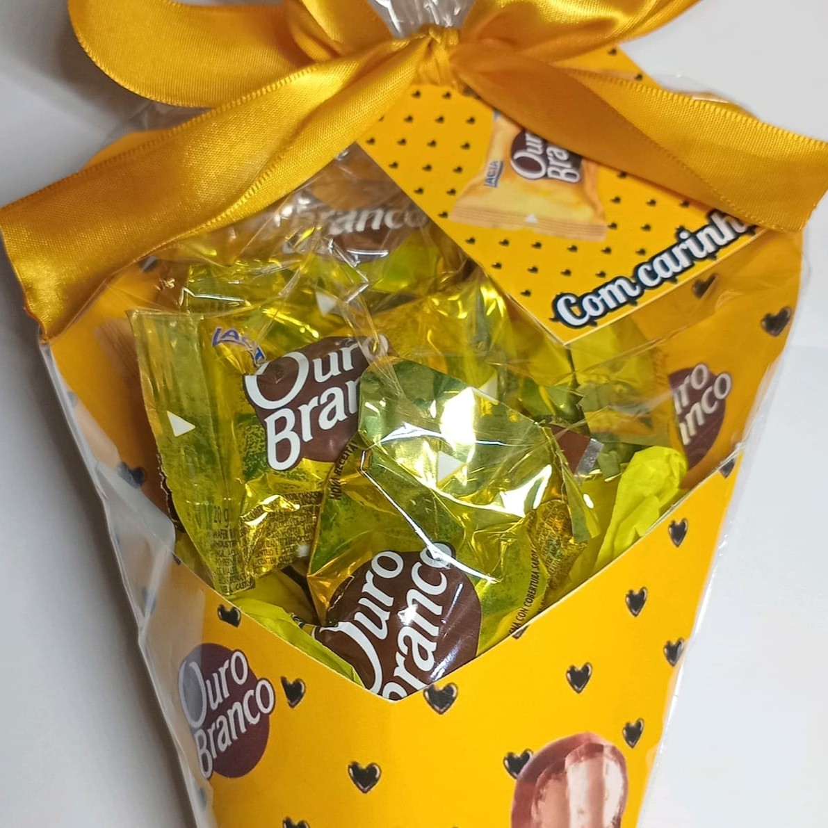 Um lindo buquê perfeito para presentear e encantar. Cheio de bombons ouro branco