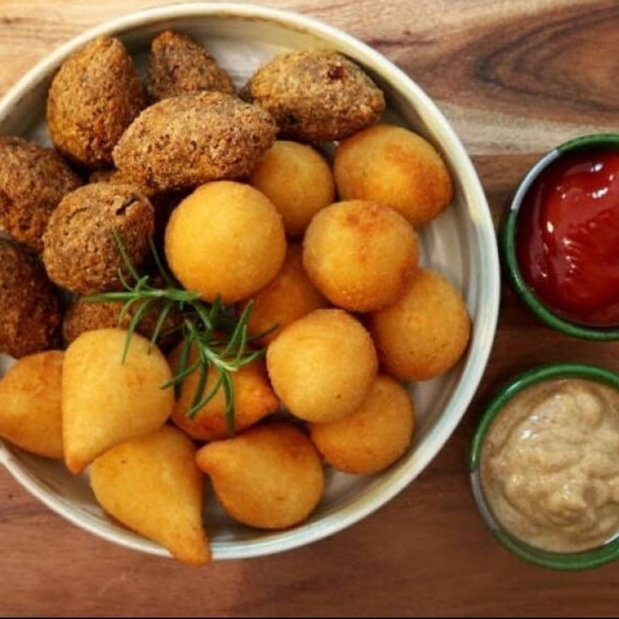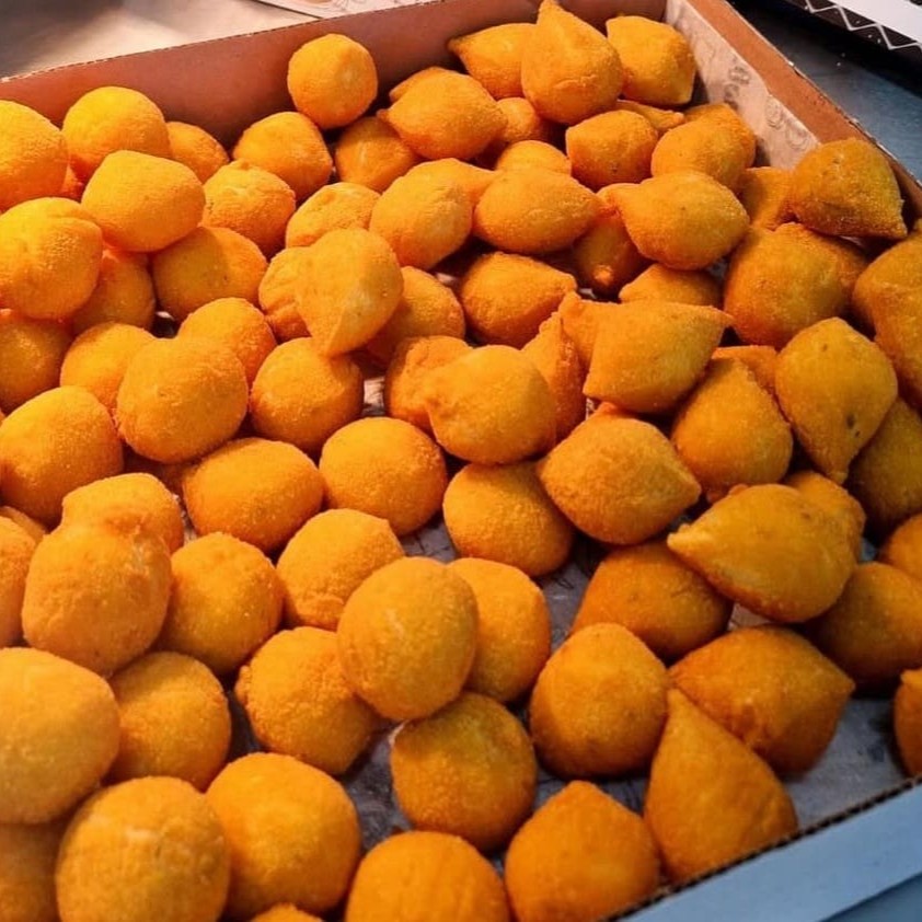 50 Mini Salgados variados 12g cada, fritos na hora produzidos com massa de batata, uma delicia