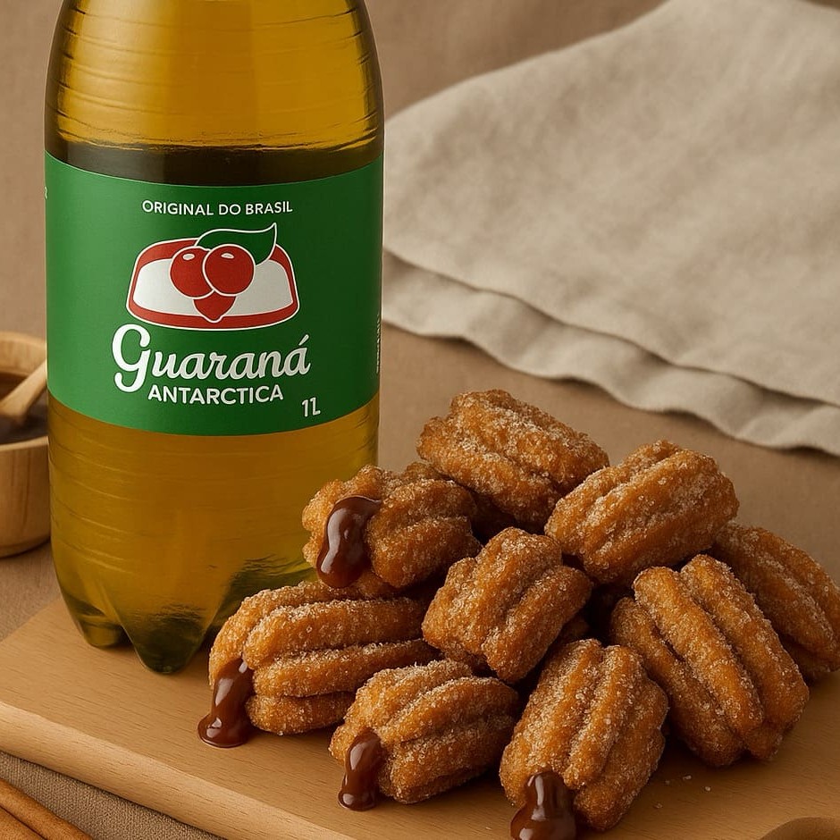 - 50 Mini Churros Recheados De Doce De Leite + 1l De Guaraná Antártica