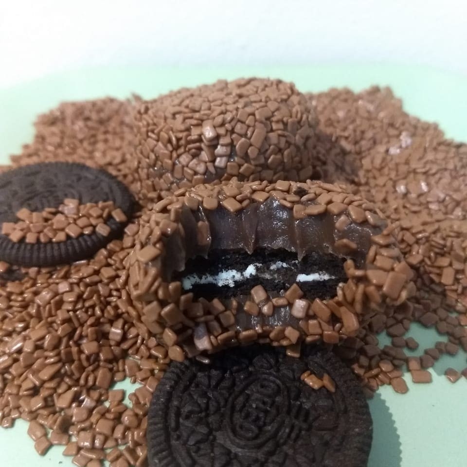 Nosso 'Brigadoreo' é uma verdadeira sinfonia de sabores! Imagine um Oreo, este inconfundível biscoito americano, envolto em nosso exclusivo brigadeiro de chocolate, uma receita secreta que eleva o sabor a outro nível. A cobertura é feita com granulado Callebaut, uma renomada marca belga conhecida pela superioridade de seus produtos de chocolate. O 'Brigadoreo' é irresistível e sofisticado, perfeit