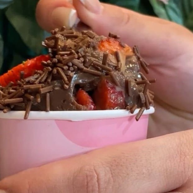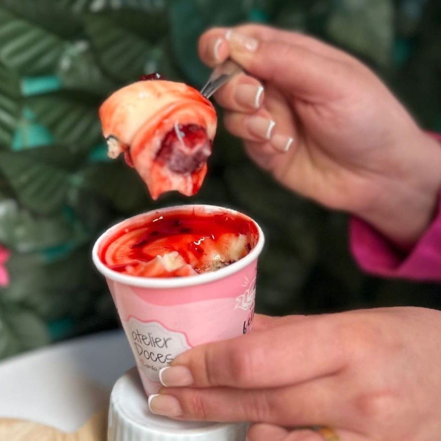 Deliciosa e inusitada Coxinha de Morango, da categoria Doces. Este é um prato que aguça os sentidos, onde morangos frescos e suculentos são cuidadosamente envolvidos em uma sedosa massa de brigadeiro de chocolate. Para finalizar, a coxinha é delicadamente empanada em granulados crocantes, o que confere uma textura irresistível. Um verdadeiro deleite para o paladar, que une a acidez do morango com