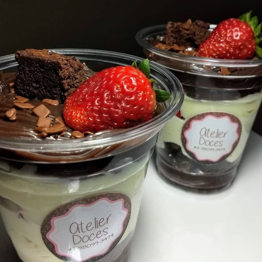 Experimente o luxuoso Copo Recheado, da categoria 'Doces'. Este deleite gastronômico é cuidadosamente composto por uma generosa camada de Brigadeiro, sedutoramente combinado com um cremoso e suave Creme de Quatro Leites. Adicionamos pedaços indulgentes de Brownie e Morangos frescos e suculentos para um toque de frescor. Finalizamos com um delicioso Creme de Leite Ninho, adicionando um agradável eq