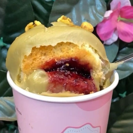 Nosso 'Bolo no Pote' de 180ml é uma delícia irresistível. Com sabor marcante de pistache, combinado com uma geleia caseira de frutas vermelhas, este bolo no pote oferece uma experiência de sabor incomparável. Cada colherada revela uma massa suave de baunilha, intercalada com um rico e cremoso creme de pistache, finalizando com a doçura vibrante da nossa geleia de frutas vermelhas. É um produto par