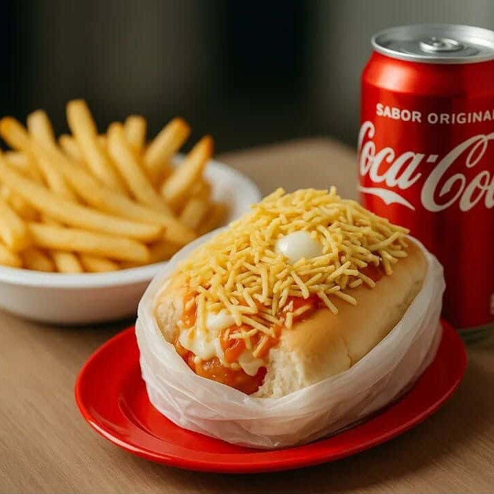 COMBO HOT DOG COMPLETO Pra matar a fome de verdade! Hot dog completo + batata frita crocante + Coca-Cola bem gelada. Um combo caprichado, saboroso e perfeito pra qualquer hora!