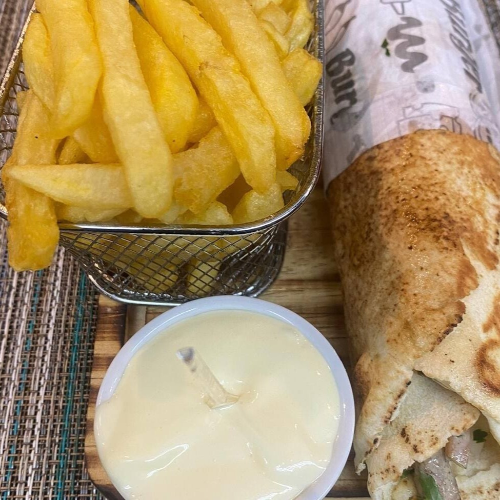 Acompanha fritas e molho extra. A explicação de ser tão vendido: carne ou frango fatiado, molho tahine, salsinha, cebola, tomate, alface, picles e o nosso tempero árabe guardado à 7 chaves. E pão Sírio. Ummm! Yala, pede logo! Única na Zn de São Paulo com time 100% composto por cozinheiros árabes. Culinária libanesa raiz. Aqui é do jeitinho que se preparam as refeições da nossa família no Líbano.