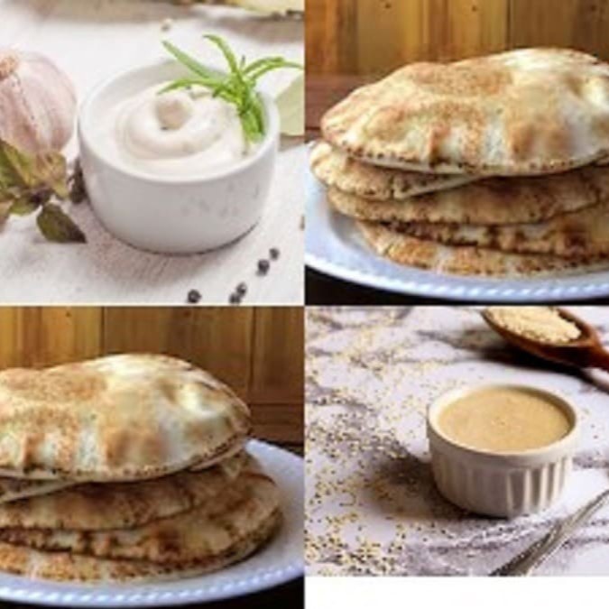 Pasta Típica Árabe á Base De Beringela e Tahine Acompanha Dois Pães Sírios