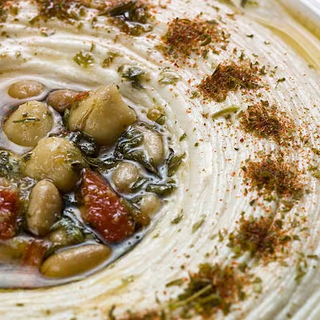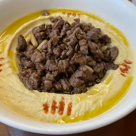 100g de Carne Fatiada 150g de Hommus Acompanha Dois Pães Sírios
