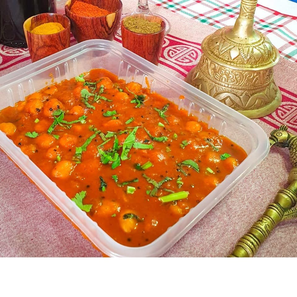 (Grão de bico servido com molho masala ) (Chick peas cooked with masala gravy )