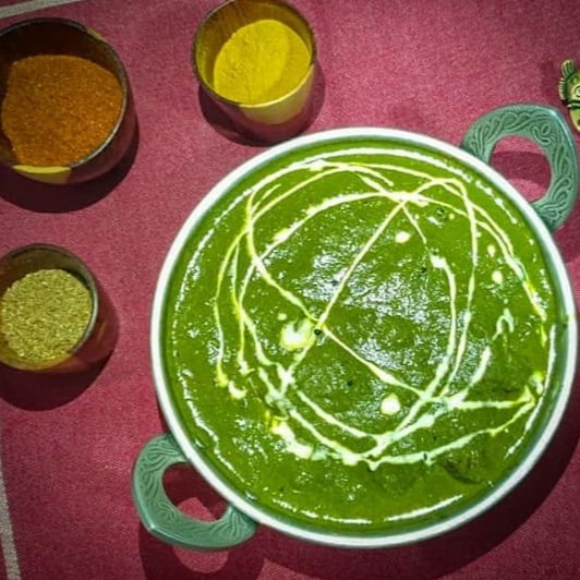 (Cubos de ricota cozidos no creme de Espinafre) (Cubes of cottage cheese highly tempered and cooked with fresh and rich cream of spinach)