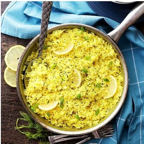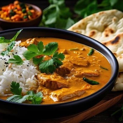Combo com arroz de limao e coco, pao indiano Naan, e sua protein de Curry sua refeicao completa em casa com preco incrivel. (uma pessoa)