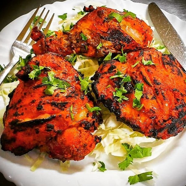 (Coxa sobrecoxa de frango marinada em molho de iogurte ) (Indian spiced chicken barbecue)