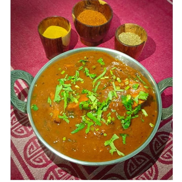 (Cubos de peixe cozido ao molho de Tomate) (Fish cubes cooked with masala sauce)