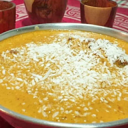 (Camarões cozidos ao leite de coco) (Shirmps tempered with rich coconut milk)