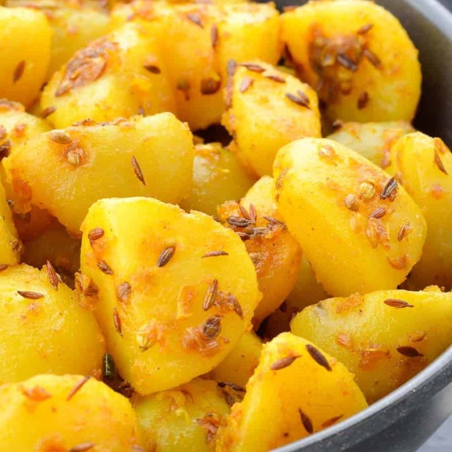 (Cubos de batatas e Couve Flor temperados com cebola, alho e gengibre) (Potatoes and cauliflower cooked in hot and spicy thick sauce)